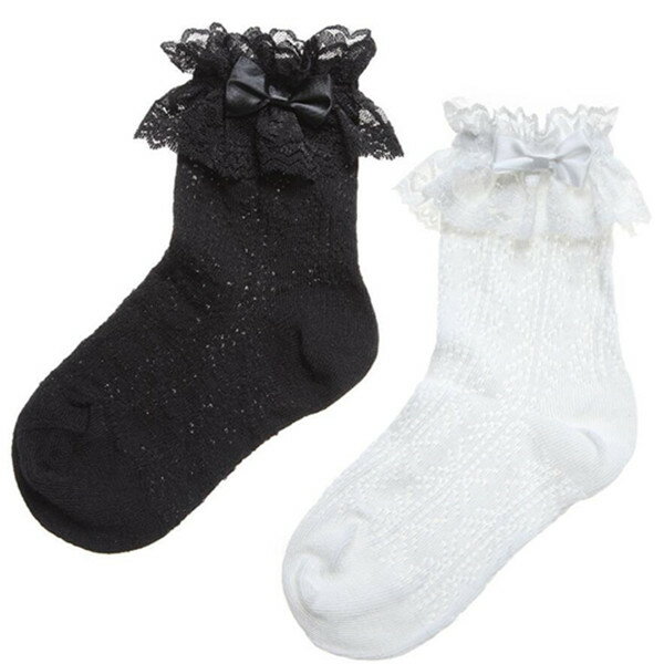 ハイソックス セット 女の子 ガールズ 靴下 卒業式 入学式 フォーマル レース 白 黒 2足セット 黒・白(ブラック/ホワイト, Free)