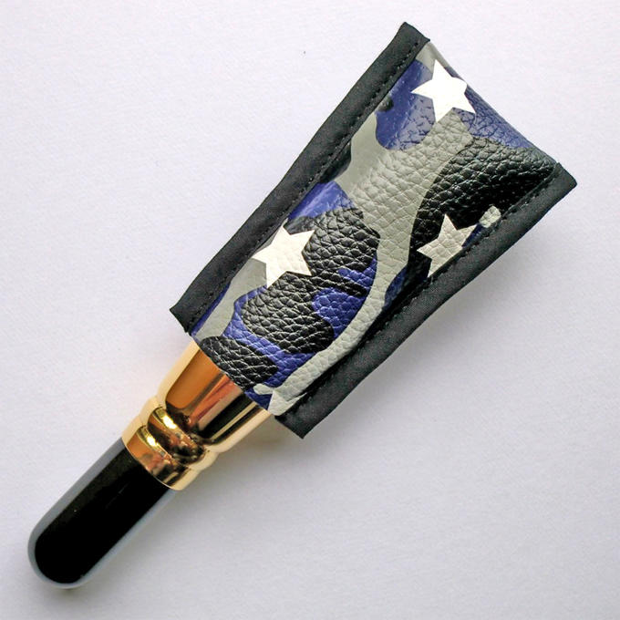 サイズ:85mm×35mm(開通口) 素 材:人工皮革(若干の伸縮性あり) 用 途:パウダーブラシ等 柄 :スター(タグ付き) ※使用する生地(素材)の裁断によって商品ごとに柄模様が異なります。