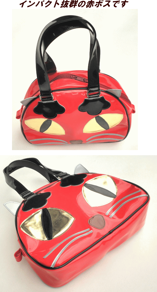 【クーポン発行中】赤猫 手提げバッグ レディース メンズ エナメルバッグm|ボストンバッグ 猫顔 猫 ネコ ねこ 雑貨 グッズ 鞄 小物 バック バッグ おもしろ オリジナル おすすめ 人気 市場 激安 便利 優れもの|かわいい おしゃれ 女性 誕生日 プレゼント|