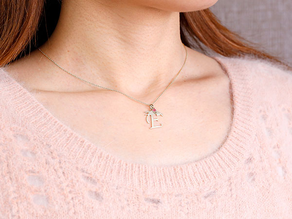 イニシャル ネーム E 猫 ネックレス ルビー ホワイトゴールドk18 ペンダント アルファベット ネコ ねこ ヘアライン仕上げ 18金 レディース チェーン 人気 贈り物 誕生日プレゼント ギフト ファッション お返し 妻 嫁 奥さん 女性 彼女 娘 母 祖母 パートナー 送料無料