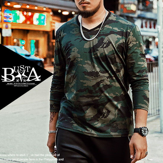 ロングTシャツ メンズ 大きいサイズ 迷彩 カモフラ 星柄 スター プリント ロンT 長袖 Tシャツ ロゴ メンズファッション B系 ストリート系ファッション ヒップホップ ブラック 黒 ビッグサイズ ビックサイズ キングサイズ バスター ぽっちゃり 西海岸 韓国 オラオラ系